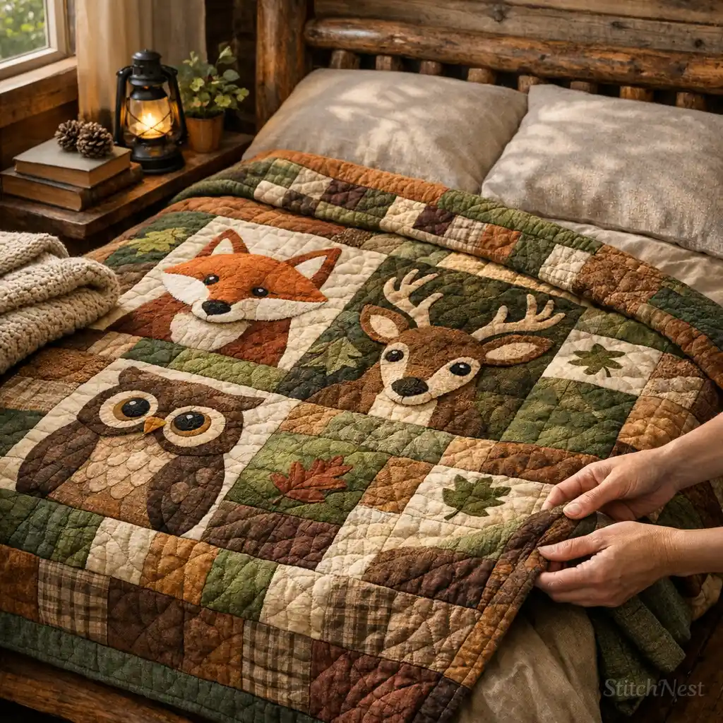1. Woodland Animal Quilt for a Cozy Cabin Feel