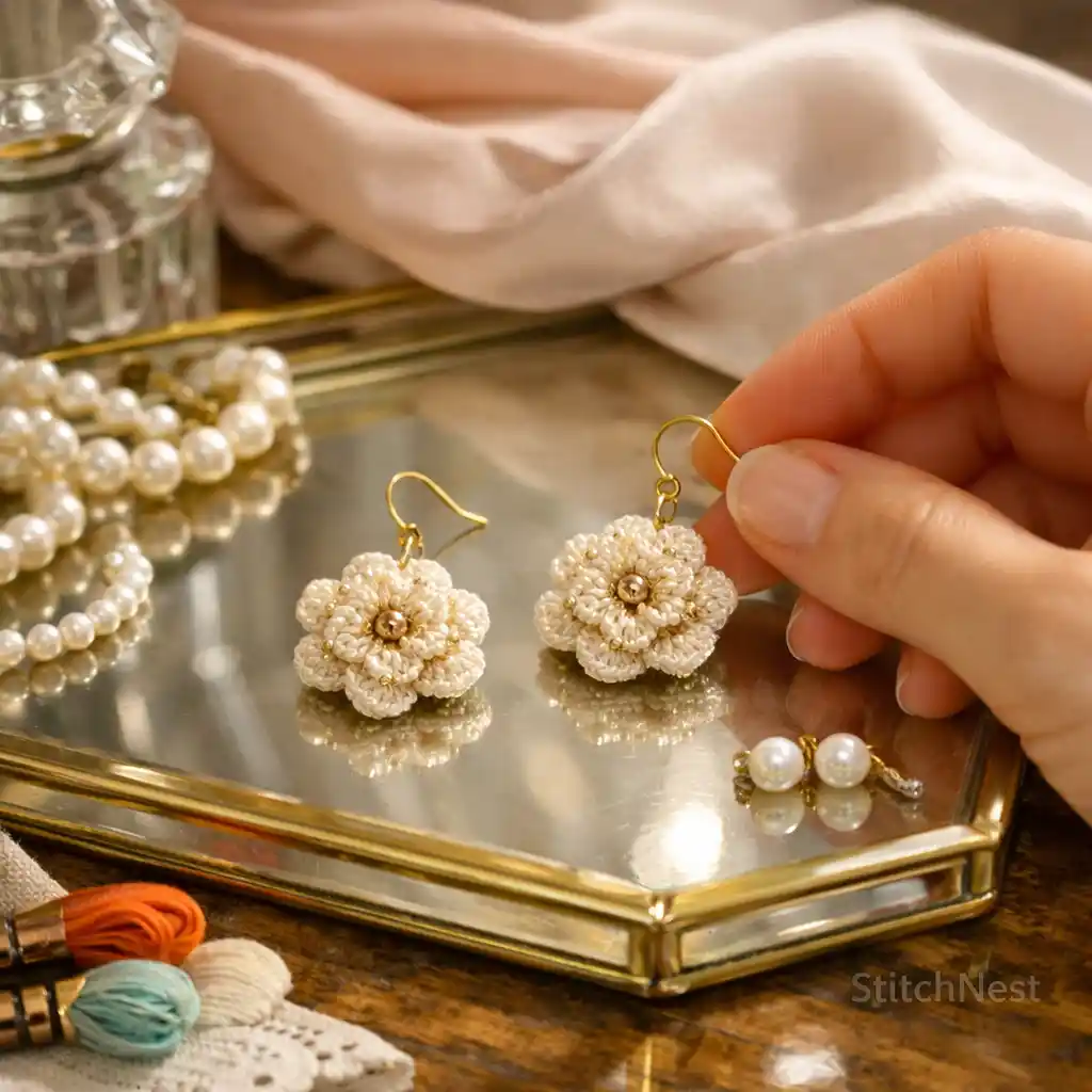 Adding beads gives your crochet flower earrings a soft sparkle without taking away from the handmade feel. You can place them in the center or along the petals for a subtle detail. It is a nice way to elevate a simple design.