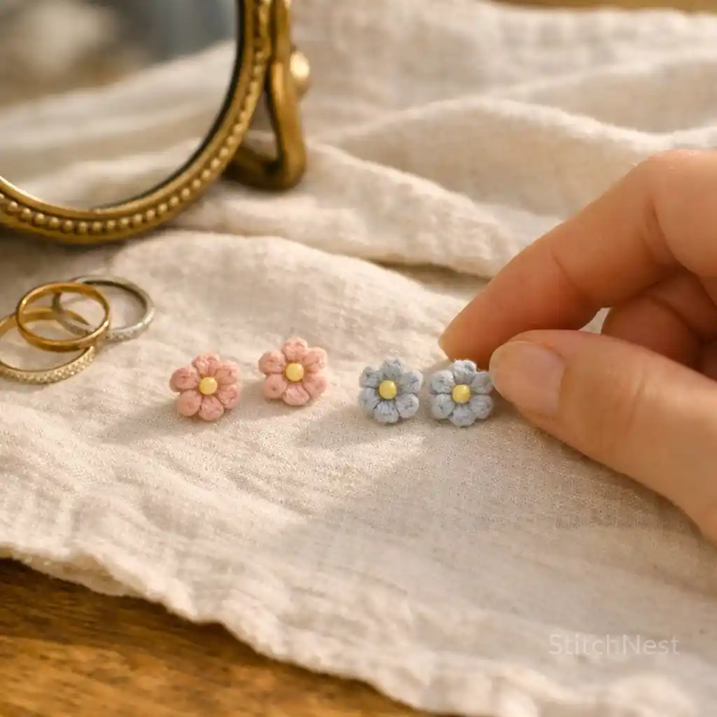 Sometimes, smaller pieces feel the most wearable. These tiny crochet flower earrings sit close to the ear and add just a hint of charm. They are great for everyday use and come together quickly, especially if you enjoy working with fine thread.